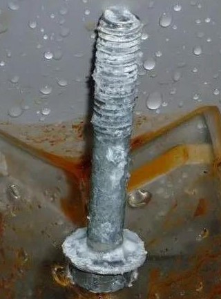 白銹是相對(duì)于紅銹命名的,紅銹是金屬基體腐蝕呈現(xiàn)的銹蝕產(chǎn)物,白銹則是鍍鋅鈍化層的腐蝕產(chǎn)物,也就是說鋅腐蝕產(chǎn)生白銹,白銹的主要成分為氫氧化鋅。