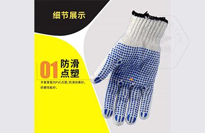 • 產(chǎn)品描述:棉滌混紡針織手套,百分之65滌百分之35棉,7針加厚涉及,掌面PVC點塑涉及加強,緊握耐磨損,防滑抗撕裂。適用于普通勞動防護使用。