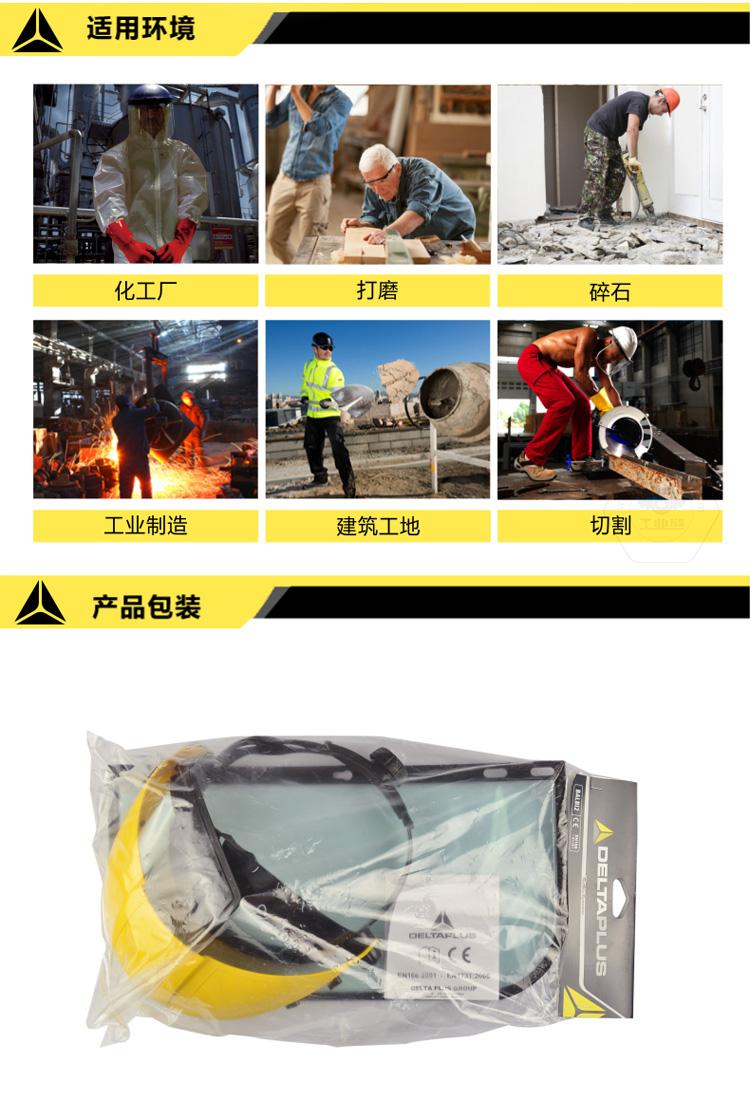 品牌: 代爾塔(DELTAPLUS) 商品名稱:代爾塔 頭箍式PC防化防沖擊面罩 實驗室防護面屏 防化學(xué)飛濺面屏 商品毛重:1.0kg 貨號:101304 類型:防護面屏 功能:防化