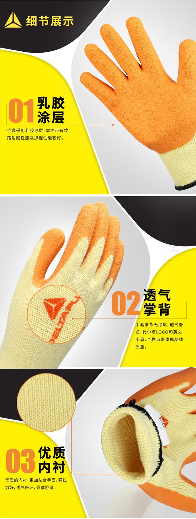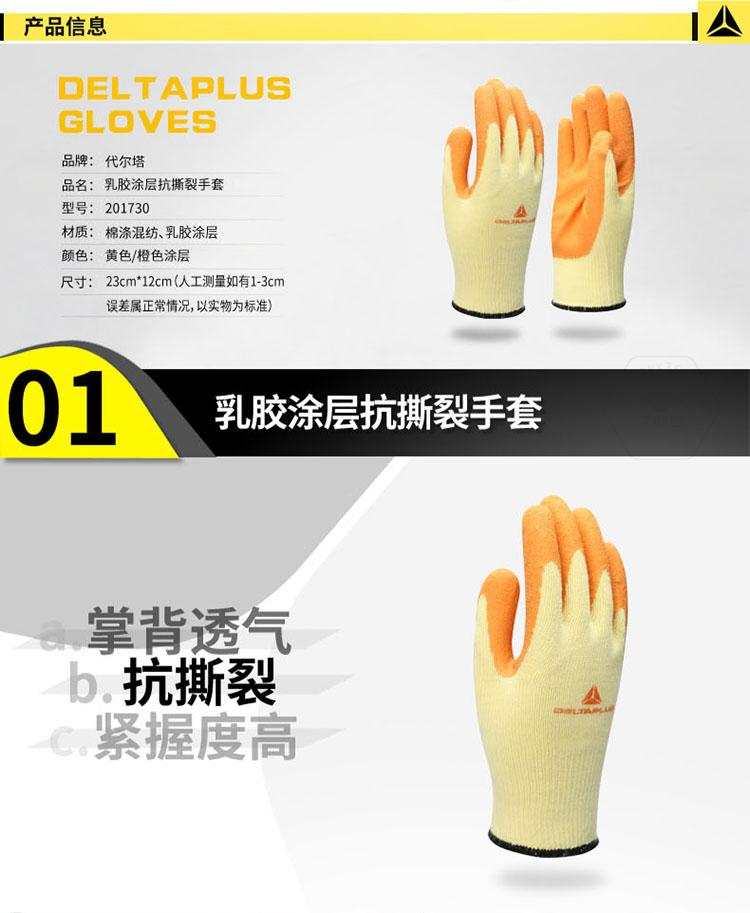 商品名稱:代爾塔 勞保手套 工作手套 透氣 乳膠涂層防撕裂 9# 201730 橙色 L號(hào)(一副)