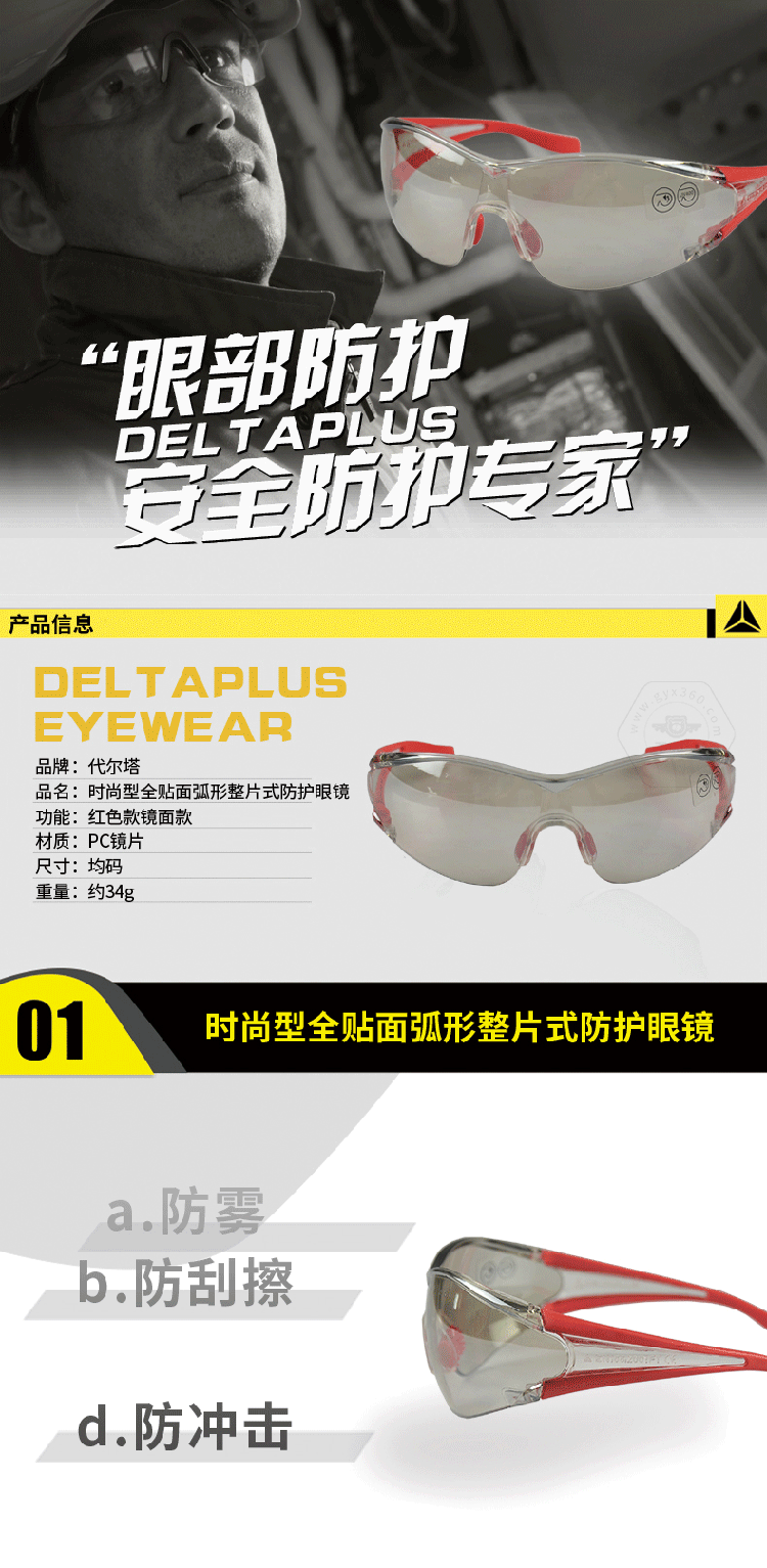 商品名稱(chēng):代爾塔 101126 時(shí)尚型全貼面弧形 安.全騎車(chē)眼鏡 PC鏡片 女 防沖擊刮擦 紅色