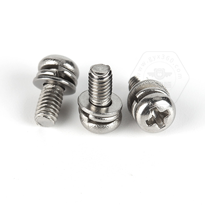 • 產(chǎn)品描述:Q/DM-01 十字槽盤頭帶平彈墊組合螺釘,也稱為企標(biāo)盤頭三組合螺絲、十字半圓頭帶平彈墊組合螺絲、盤頭帶平彈墊連接副、十字盤頭帶平彈墊組合件機(jī)螺絲、十字盤頭螺釘平彈墊組合。螺釘為企業(yè)標(biāo)準(zhǔn) Q/DM-01-2015,標(biāo)準(zhǔn)規(guī)格范圍M1.6-M6,可選材質(zhì)有不銹鋼304,和H62銅。該螺釘由8 十字槽小盤頭螺釘、 組合件用彈簧墊圈以及平墊圈構(gòu)成,先將墊圈和螺釘穿在一起,再經(jīng)過搓絲而組成。組合后墊圈自由轉(zhuǎn)