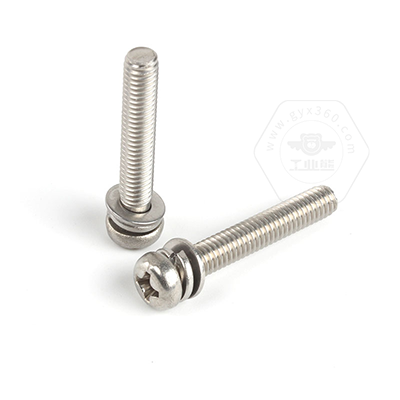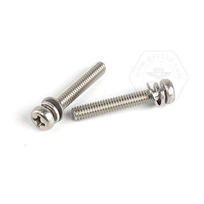 • 產(chǎn)品描述:Q/DM-01 十字槽盤頭帶平彈墊組合螺釘,也稱為企標(biāo)盤頭三組合螺絲、十字半圓頭帶平彈墊組合螺絲、盤頭帶平彈墊連接副、十字盤頭帶平彈墊組合件機螺絲、十字盤頭螺釘平彈墊組合。螺釘為企業(yè)標(biāo)準(zhǔn) Q/DM-01-2015,標(biāo)準(zhǔn)規(guī)格范圍M1.6-M6,可選材質(zhì)有不銹鋼304,和H62銅。該螺釘由8 十字槽小盤頭螺釘、 組合件用彈簧墊圈以及平墊圈構(gòu)成,先將墊圈和螺釘穿在一起,再經(jīng)過搓絲而組成。組合后墊圈自由轉(zhuǎn)