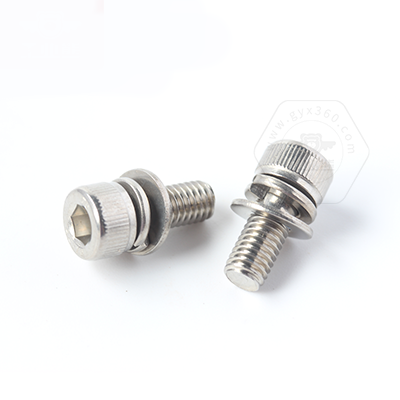 • 產(chǎn)品描述:DIN912 內(nèi)六角圓柱頭滾花帶平彈墊組合螺釘,是組合螺釘?shù)囊环N,又稱為內(nèi)六角圓柱頭組合件、內(nèi)六角杯頭連接副、內(nèi)六角杯頭三組合螺絲、圓柱頭自帶平彈墊螺釘。DIN912 內(nèi)六角圓柱頭滾花帶平彈墊組合螺釘,由內(nèi)六角圓柱頭螺釘、平墊圈和彈墊先組合后,再搓絲,形成一個(gè)組合件,組合好后墊圈能自由轉(zhuǎn)動且不會脫落。組合件使用方便,不用再另配平墊、彈墊,大大提高生產(chǎn)組裝效率。DIN912 內(nèi)六角圓柱頭滾花帶平彈墊