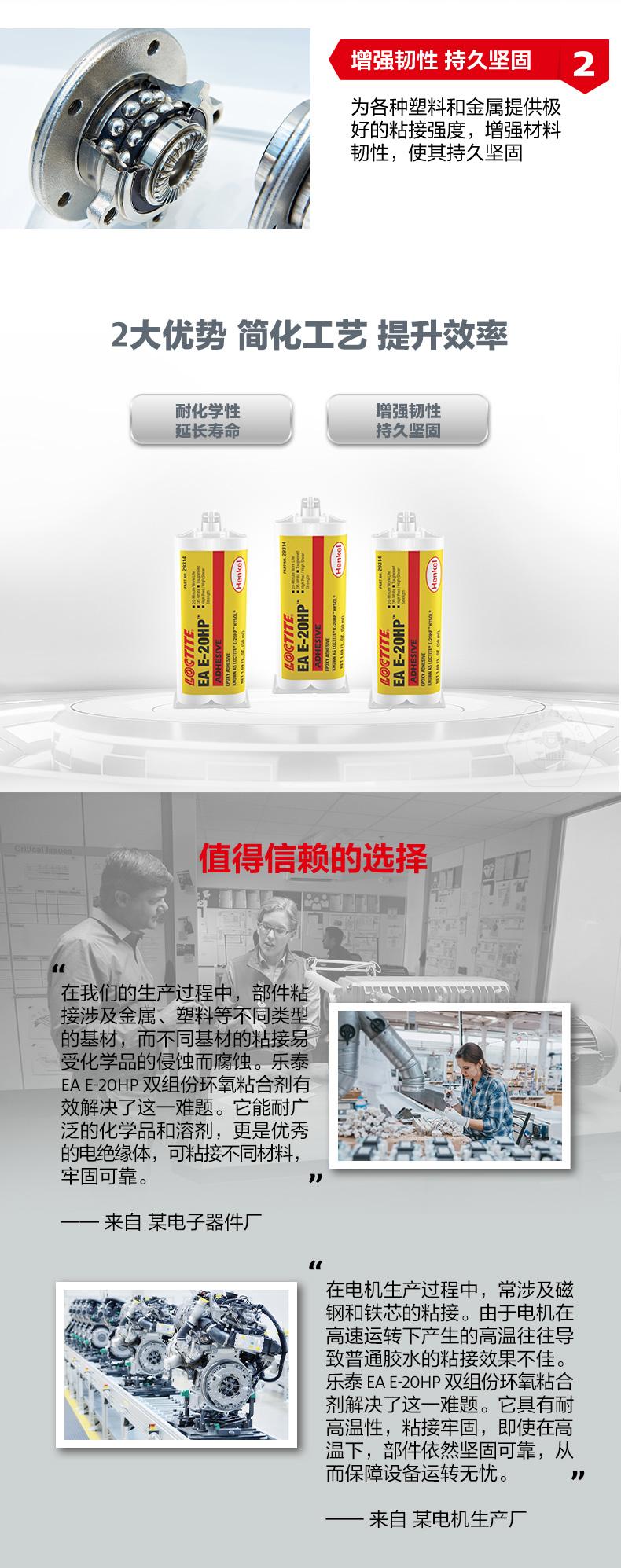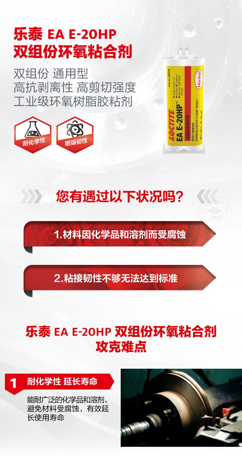 樂泰EA E-20HP雙組份環(huán)氧粘合劑是一款雙組份、通用型工業(yè)級(jí)環(huán)氧樹脂膠粘劑。樂泰EA E-20HP雙組份環(huán)氧粘合劑具備高抗剝離性、高剪切強(qiáng)度、耐化學(xué)性和增強(qiáng)韌性,可為多種塑料和金屬提供出色粘接強(qiáng)度。樂泰EA E-20HP雙組份環(huán)氧粘合劑適用于金屬、光纖、陶瓷等材料,是通用工業(yè)裝配的理想選擇。